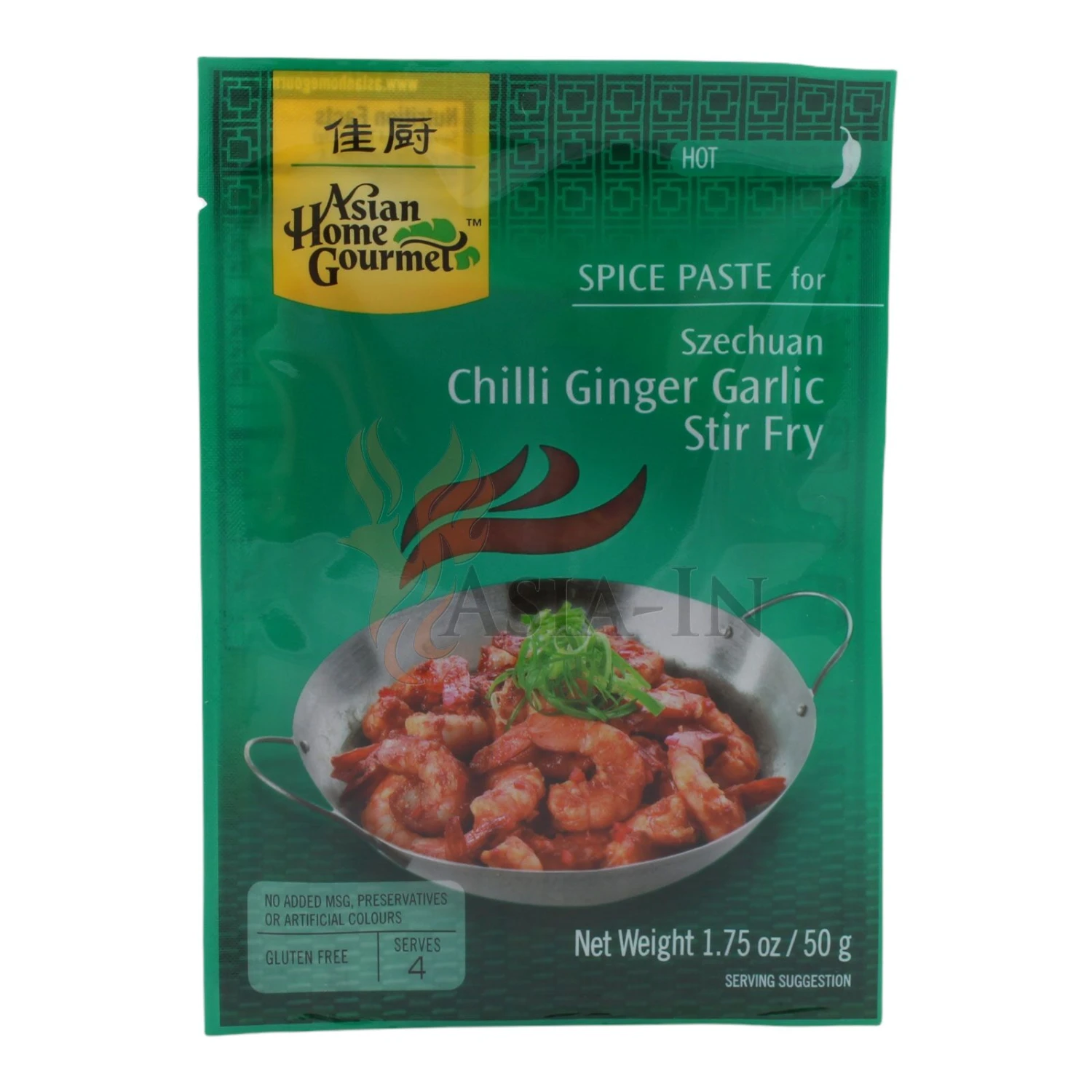 In unserem Online Shop für Asia Food setzen wir eben auf hohe Genüsse zu niedrigen Preisen, so auch beim Szechuan Chilli Ginger Garlic Stir Fry von Asian Home. Für das Pfannengericht liefern wir Ihnen in diesem 50 Gramm Paket die grundlegende Würzpaste. Sie ist die Basis, auf der das gesamte Gericht aufbaut und besteht aus den drei typischen Geschmacksrichtungen Ingwer, Knoblauch und Chili.