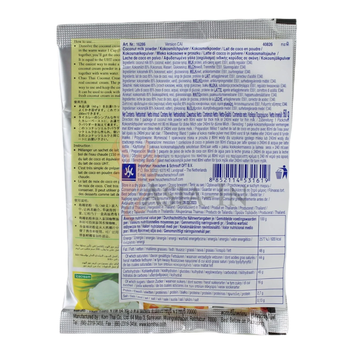 1 Päckchen Kokosmilchpulver vermischen mit 80ml Wasser für dicke Milch oder 240ml für dünne Milch.