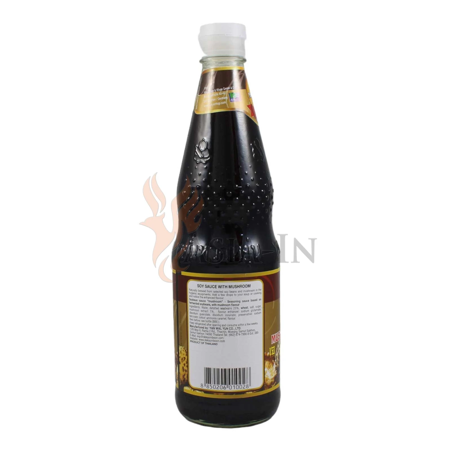 | Zutaten: | Wasser, Sojabohnen, 25%, Weizen, Salz, Zucker, Pilzextrakt, 1%, Geschmacksverstärker: Mononatriumglutamat E621, Geschmacksverstärker: Dinatriumguanylat E627, Geschmacksverstärker: Dinatriuminosinat E631, Konservierungsstoff: Natriumbenzoat E211, Farbstoff: Ammoniak-Zuckerkulör E150c, Aroma |