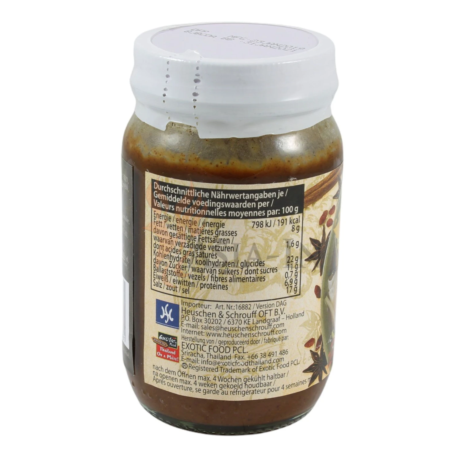 | Lagerhinweis: | Trocken lagern. Nach dem Öffnen max. 4 Wochen gekühlt haltbar. |