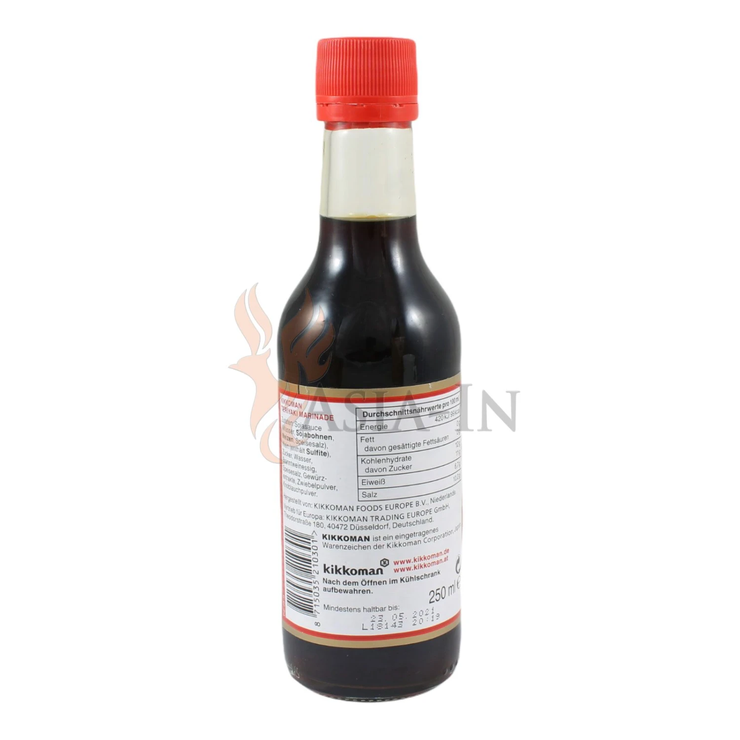| Zutaten: | Sojasauce (Wasser, Sojabohnen, Weizen, Speisesalz), Wein (enthält Sulfite), Zucker, Wasser, Branntweinessig, Speisesalz, Gewürzextrakte, Zwiebelpulver, Knoblauchpulver |