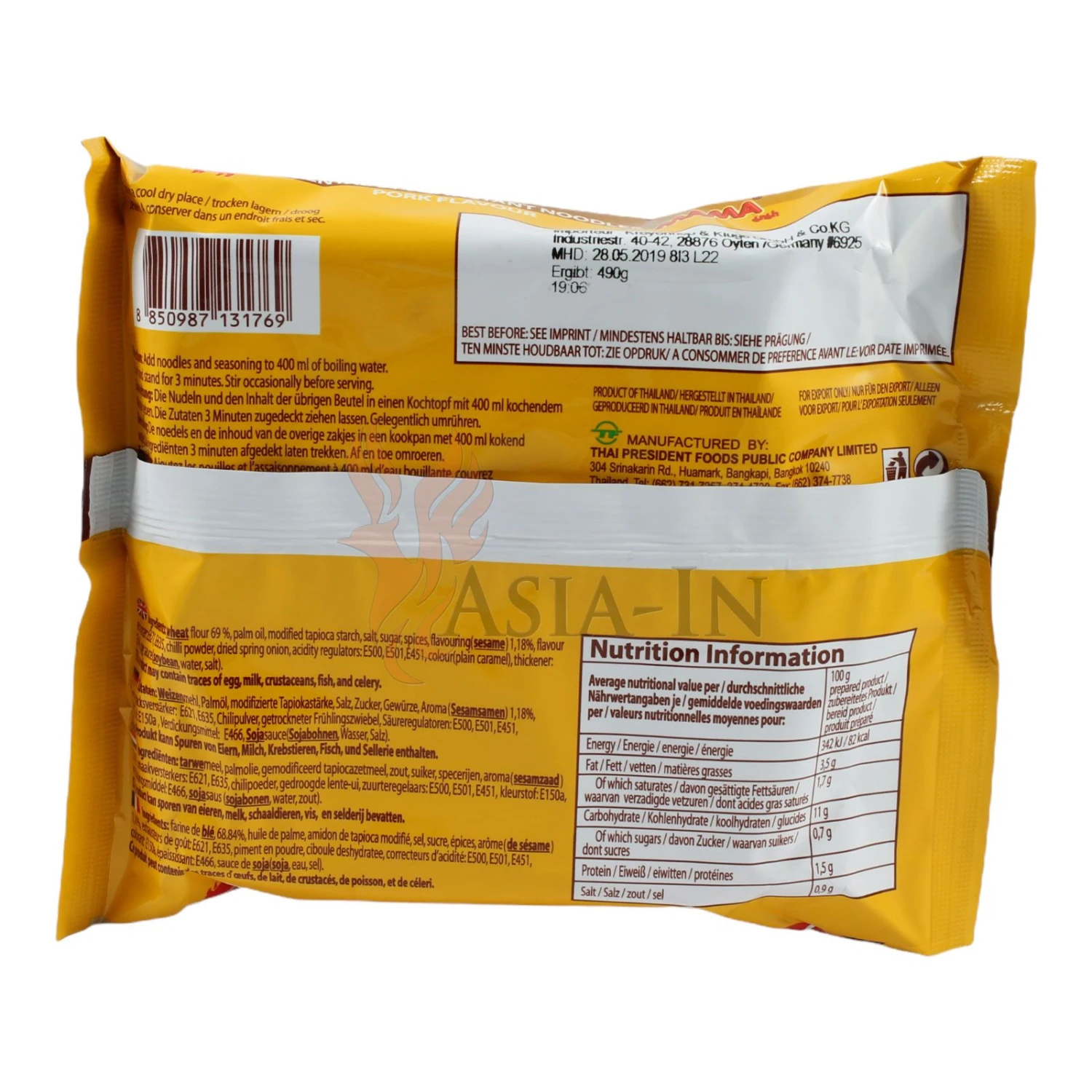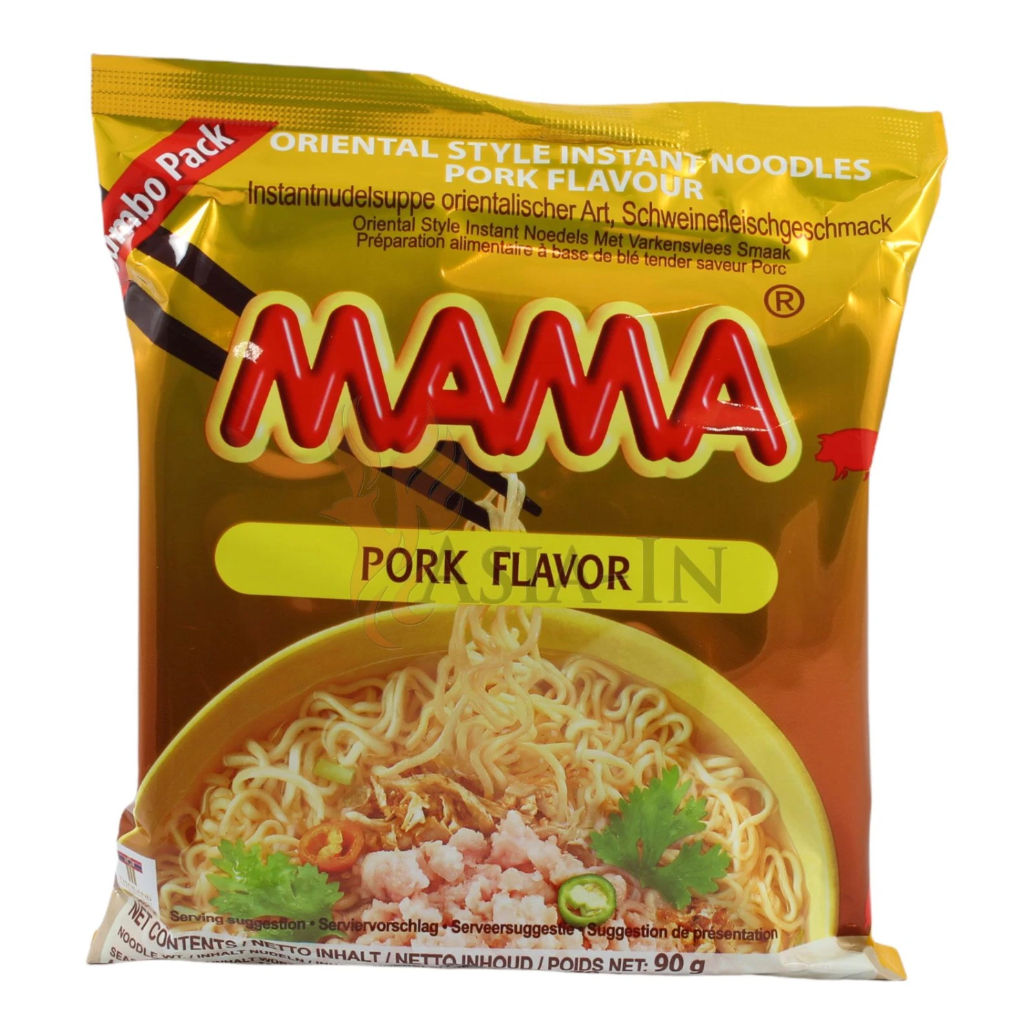 Als beliebteste Fleischsorte in asiatischen Ländern, allen voran China, ist Schweinefleisch aus der Küche Asiens nicht weg zu denken. Häufig landet das Schweinefleisch zusammen mit anderen Zutaten wie Gemüse und Ramennudeln als Einlage in einer deftigen Suppe, die Asiaten zu nahezu jeder Tageszeit als Hauptmahlzeit oder schnellen Snack genießen. Der thailändische Hersteller MAMA bietet die ideale Lösung für alle, die Heißhunger auf eine heiße Suppe nach asiatischer Art haben: Die Schwein Instant Nudel Suppe wird mit heißem Wasser in wenigen Minuten zubereitet. Dampfend heiß steigt die Würzmischung von Sojasauce, Schalotte, getrocknetem Porree und Schweinefleischaroma in die Nase. Chilipulver sorgt für eine leichte Schärfe, ein wahres Muss bei asiatischen Suppen.