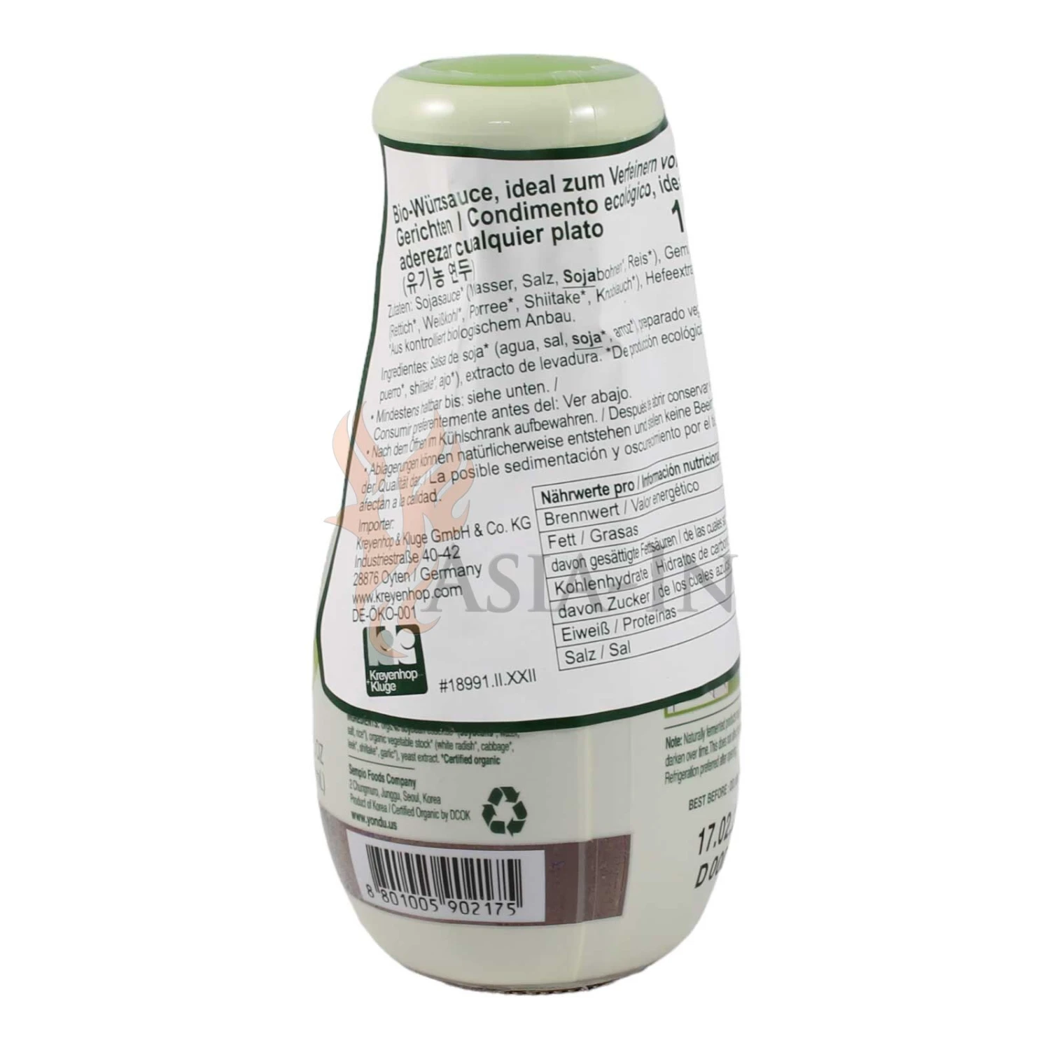 | Zutaten: | Sojasauce (Wasser, Salz, Sojabohnen, Reis), Rettich, Weisskohl, Porree, Shiitake, Knoblauch, Hefeextrakt |